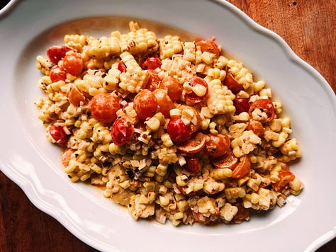 A long time ago, I fell in love with what Salsa Matcha brings to vegetables. It’s a Mexican chili oil with a bold flavor profile of dried chilies, nuts, seeds and garlic. I try and find ways to incorporate it in fresh preparations because of how it lifts and enhances anything it dresses. It adds spice, umami and lusciousness in just a few spoonfuls. Summer fruits and vegetables were made for this condiment — like juicy, sweet tomatoes and corn, an absolute match made in heaven for the spicy, smoky, creamy dressing I made for this recipe. With very few ingredients and steps this side dish, topping or salad packs so much punch and can be served immediately or chilled.